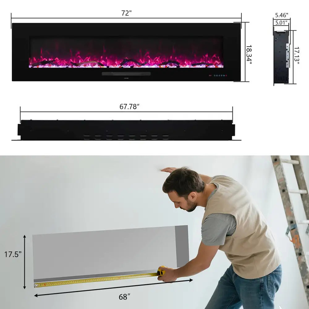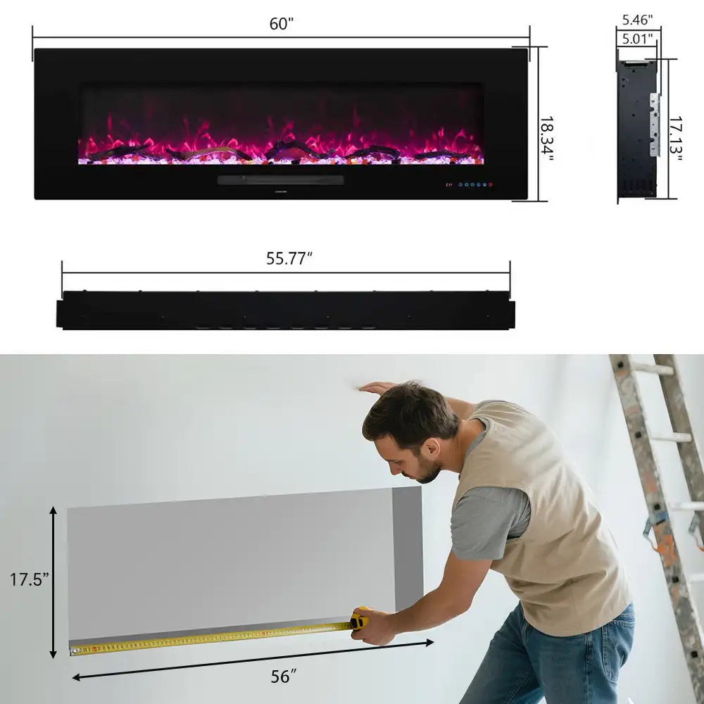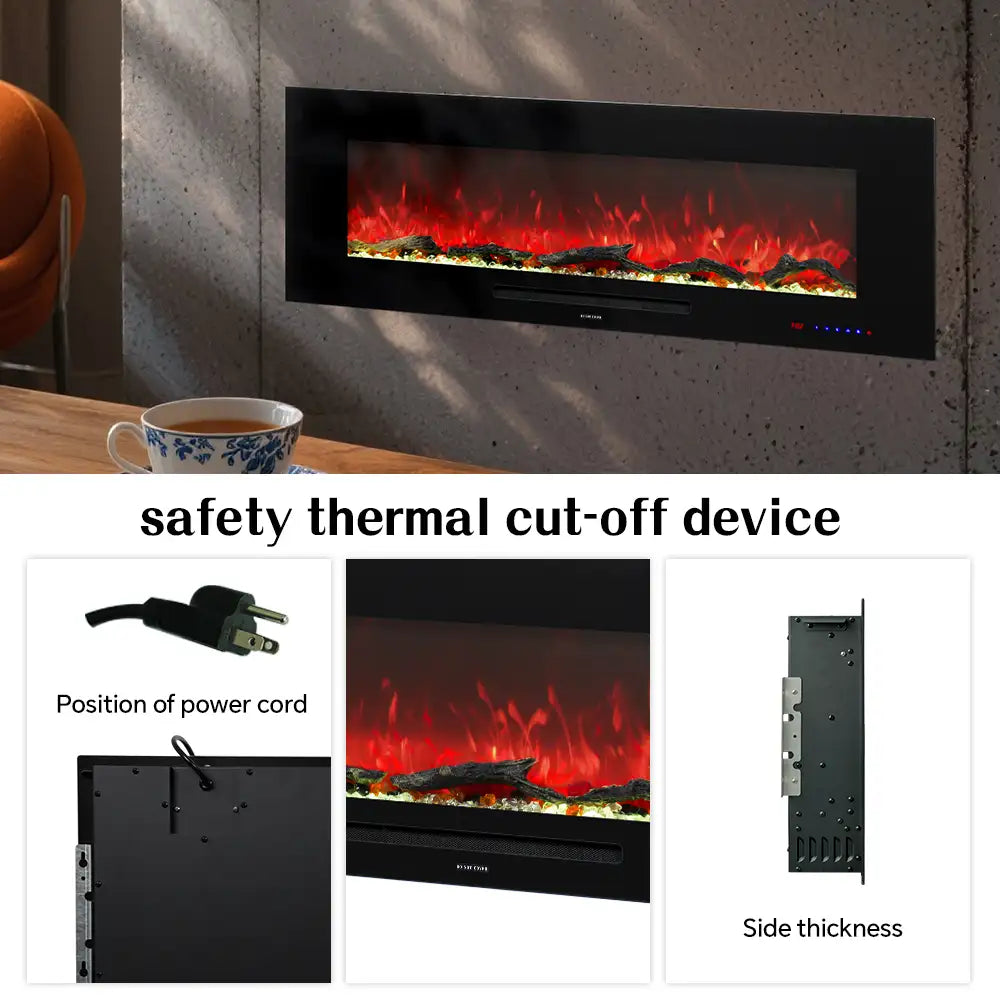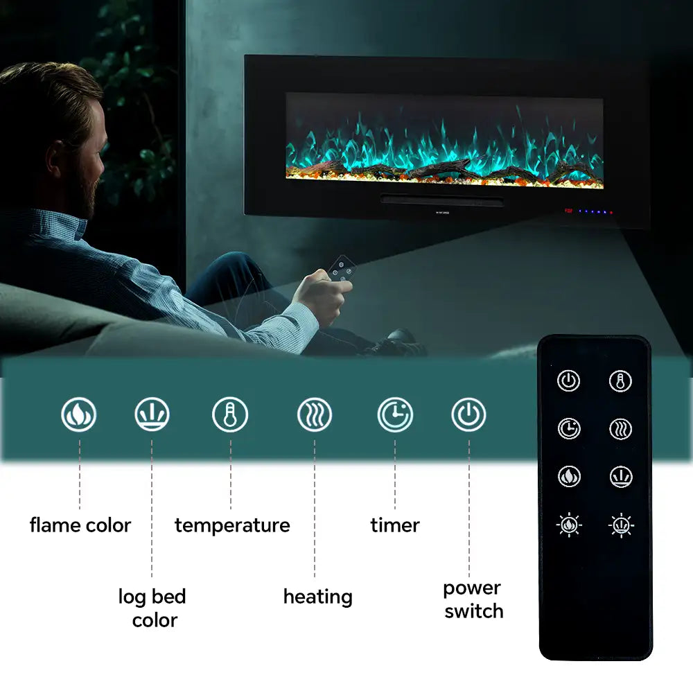 This 50" electric fireplace is exactly what I needed. The design is simple and modern, with tempered glass and metal that feel solid and durable. It fits well in my living room and matches my home decor easily.Installation was straightforward. The package included all necessary brackets and instructions. You can either mount it recessed into the wall or hang it on the surface, which gives flexibility depending on your setup. Just make sure to keep flammable items at least 0.9 meters away from the heater, as advised.The heater has two power settings: low at 750W and high at 1500W, which can heat up to about 400 square feet. The heat comes out steadily and warms the room well. You can also run the fireplace without heat if you just want the flame effect. The thermostat and timer functions are easy to use and helpful for saving energy.The flame simulation is very customizable. It has 13 flame colors and 13 fuel bed colors, allowing for 169 possible combinations. You can adjust brightness across five levels. It even includes three types of ember materials — whole charcoal wood, crushed charcoal, and crystal — to change the look further. The remote control makes changing settings quick and convenient.Safety features include built-in overheating protection and SGS certification, which gives peace of mind. The product comes with a 1-year warranty and lifetime technical support from the manufacturer, Flameline, who seems experienced with electric fireplaces.Overall, this electric fireplace looks good, heats well, and has useful features. It was easy to set up, and I haven’t had any issues. I’d recommend it for anyone looking to add a stylish and functional fireplace to their home.