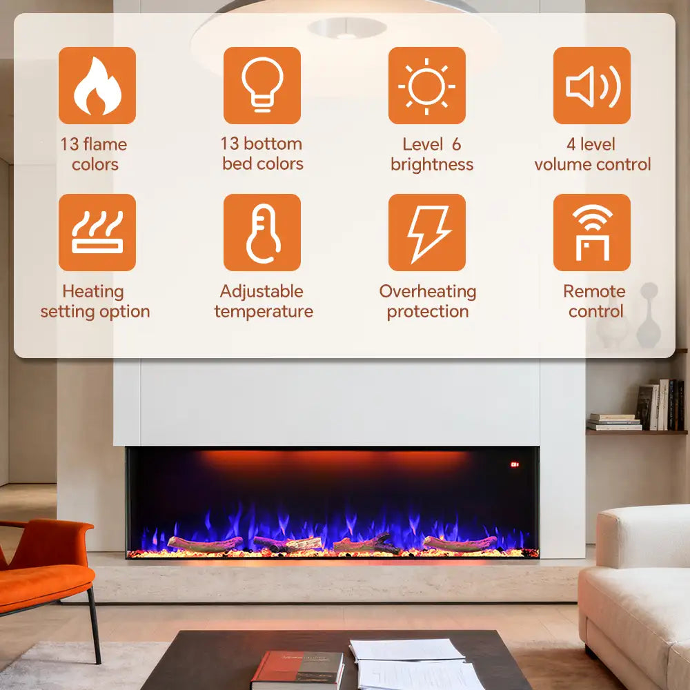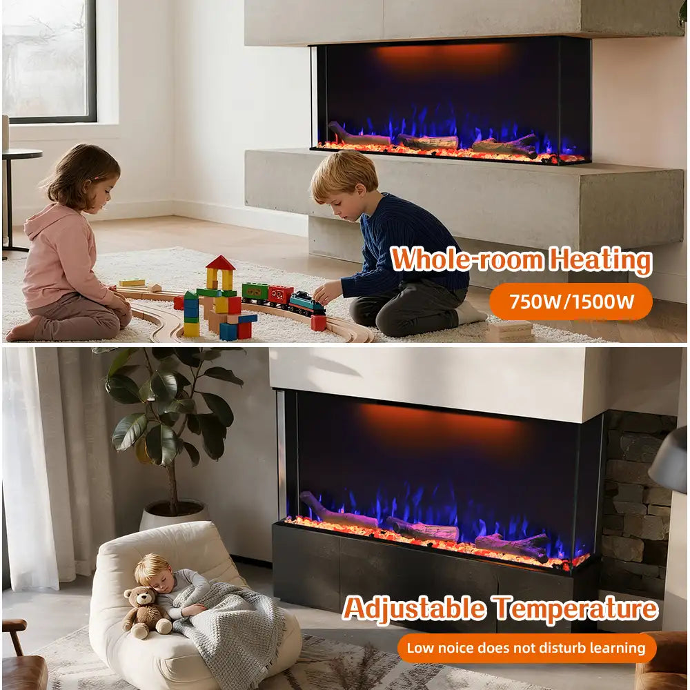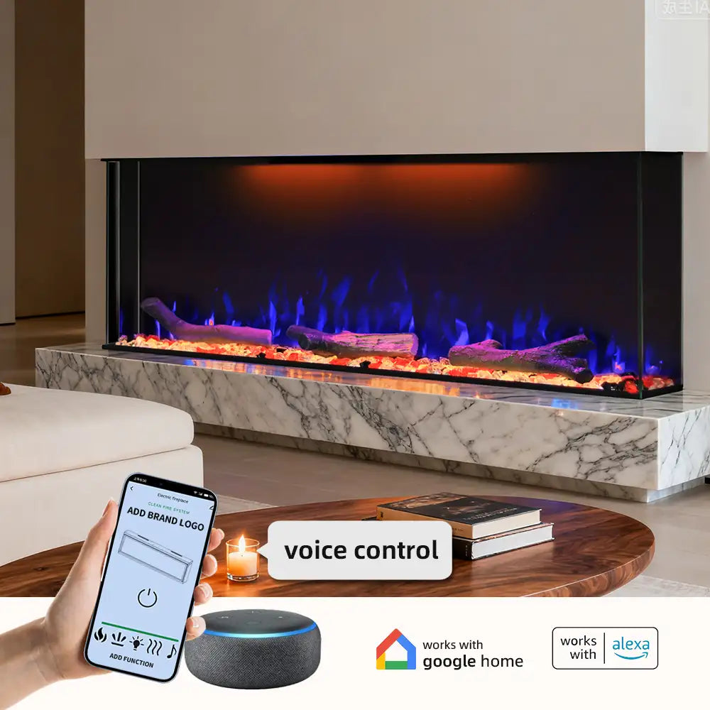FL-TZS 50 Inch Three Sided Elelctric Fireplace with Smart Control