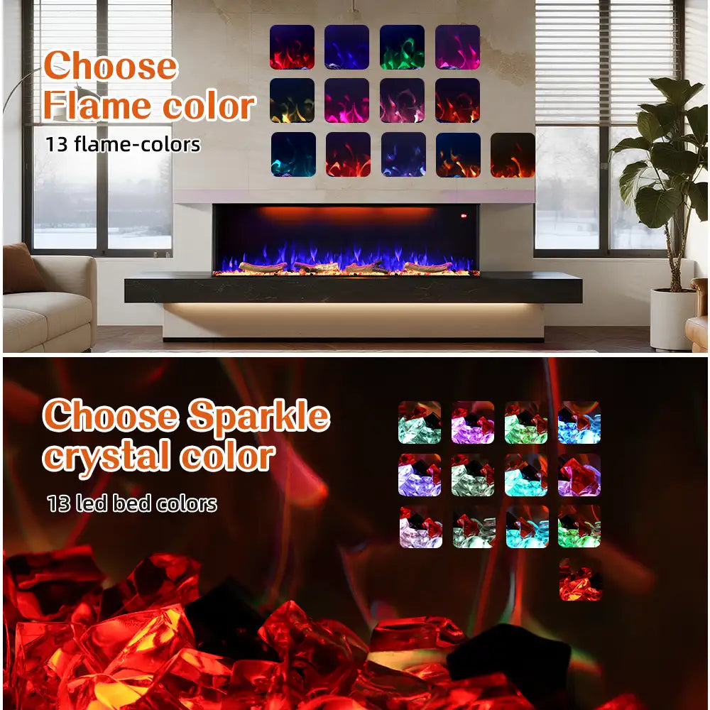 • 13 flame colors and 13 log bed color options
