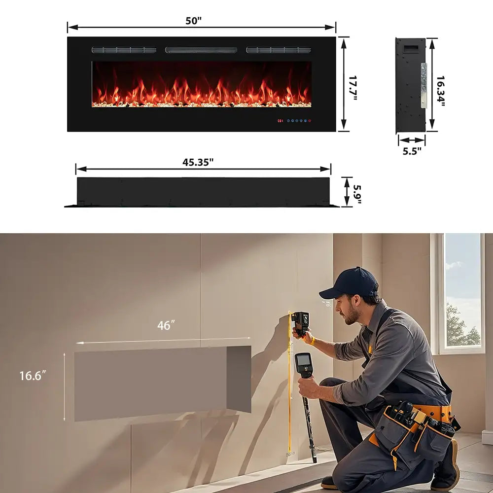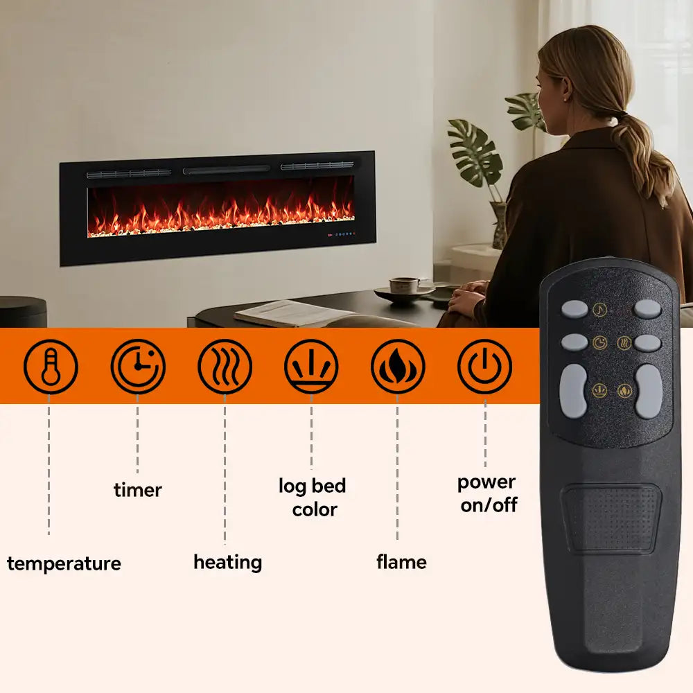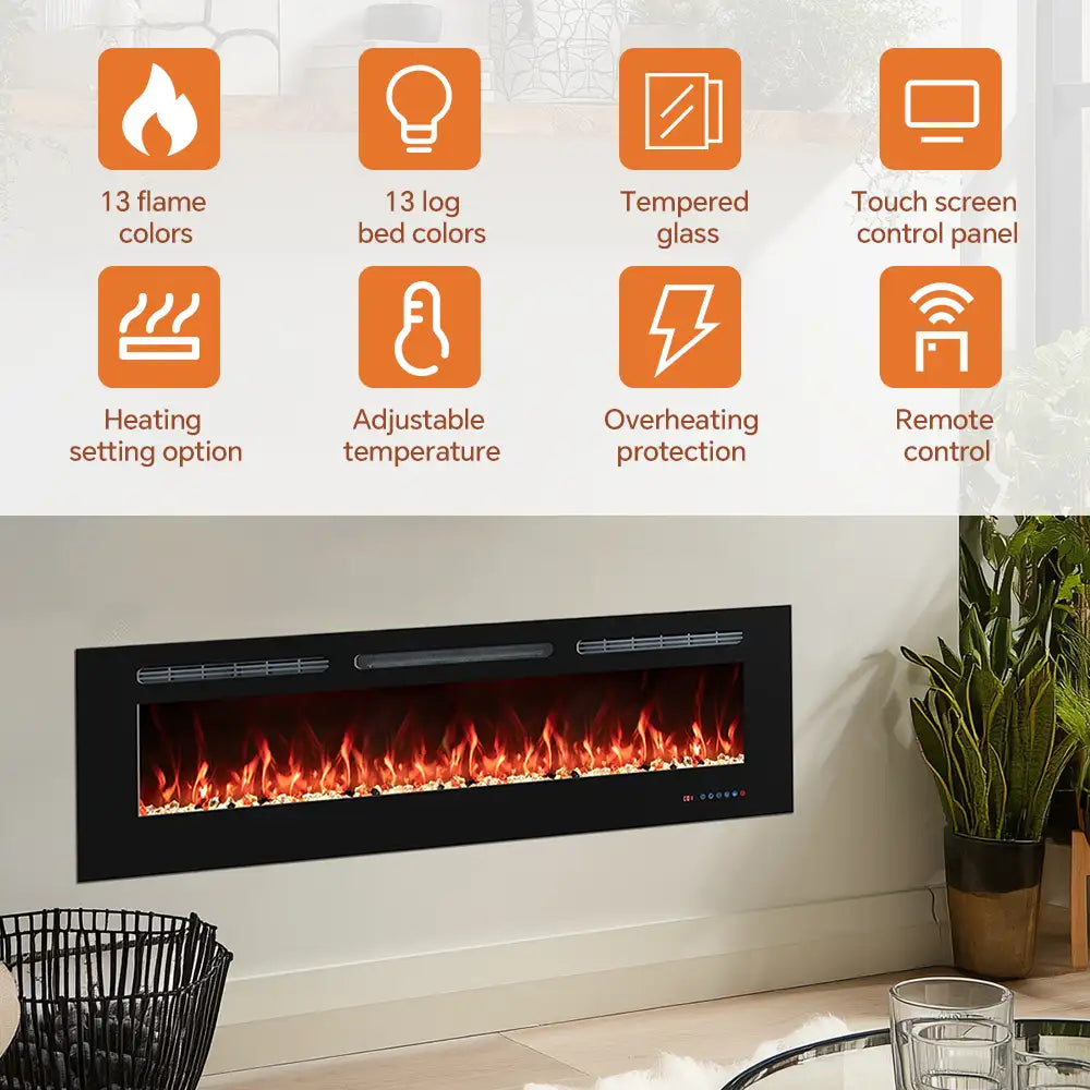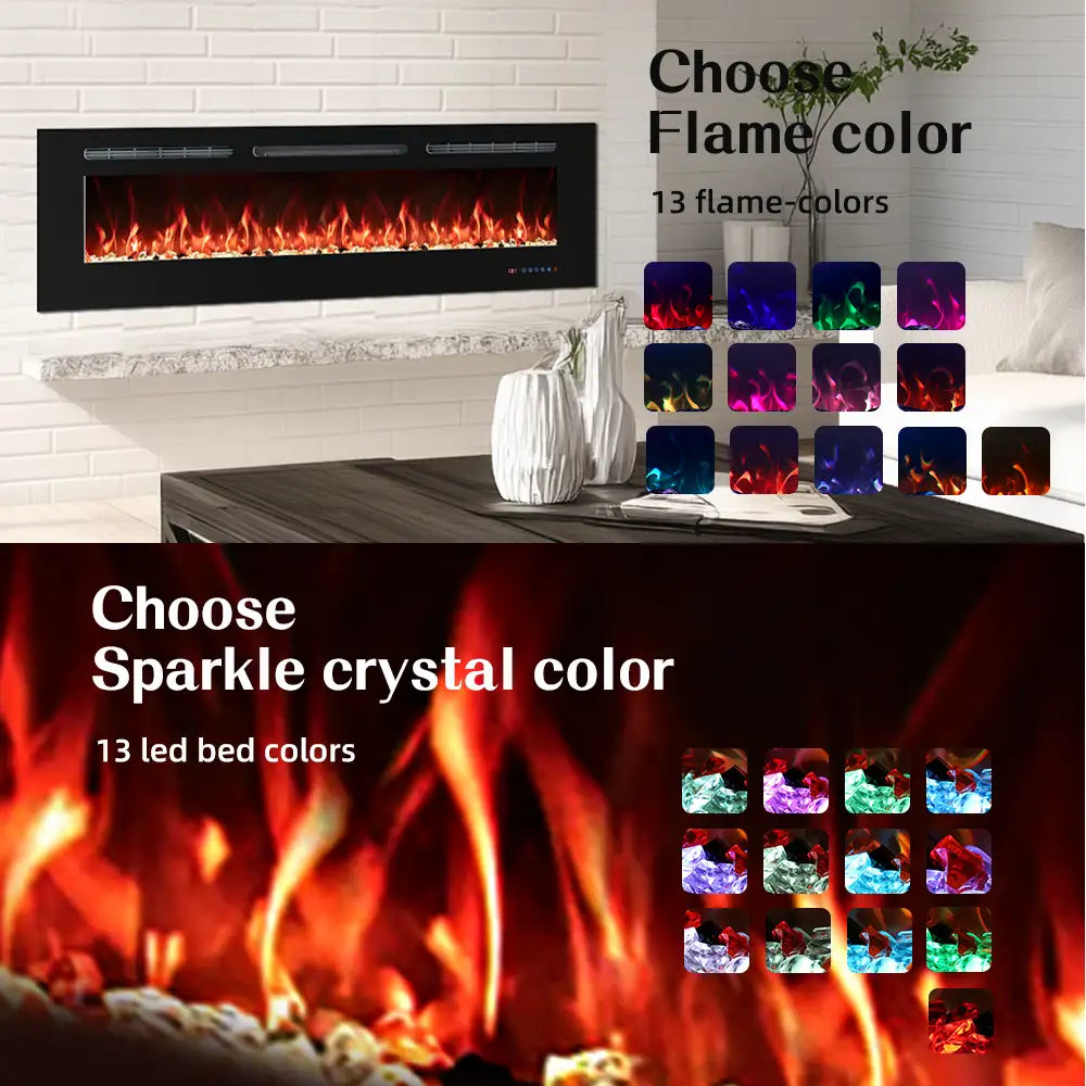 Elegant electric fireplace, the perfect combination of beauty and practicality. With 13 flame colors and 13 bed colors to choose from, you can create the ideal ambiance for any space. It offers both heating and flame-only options, allowing you to enjoy the mesmerizing flames even without the heat. Set the desired temperature with ease, and the fireplace will keep you warm and cozy.