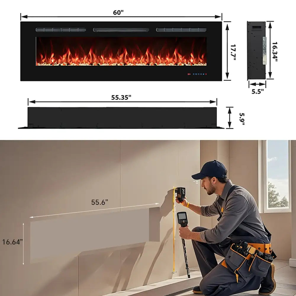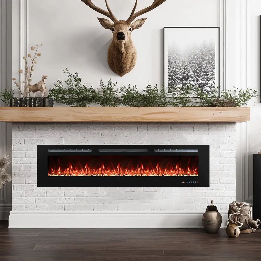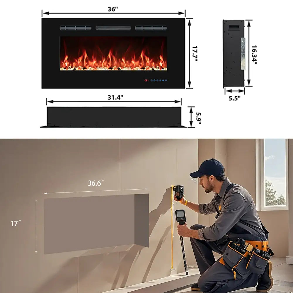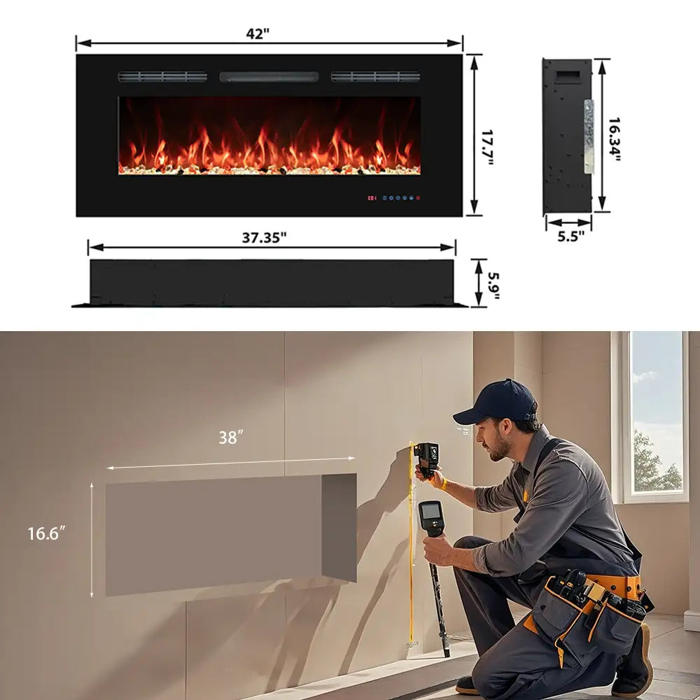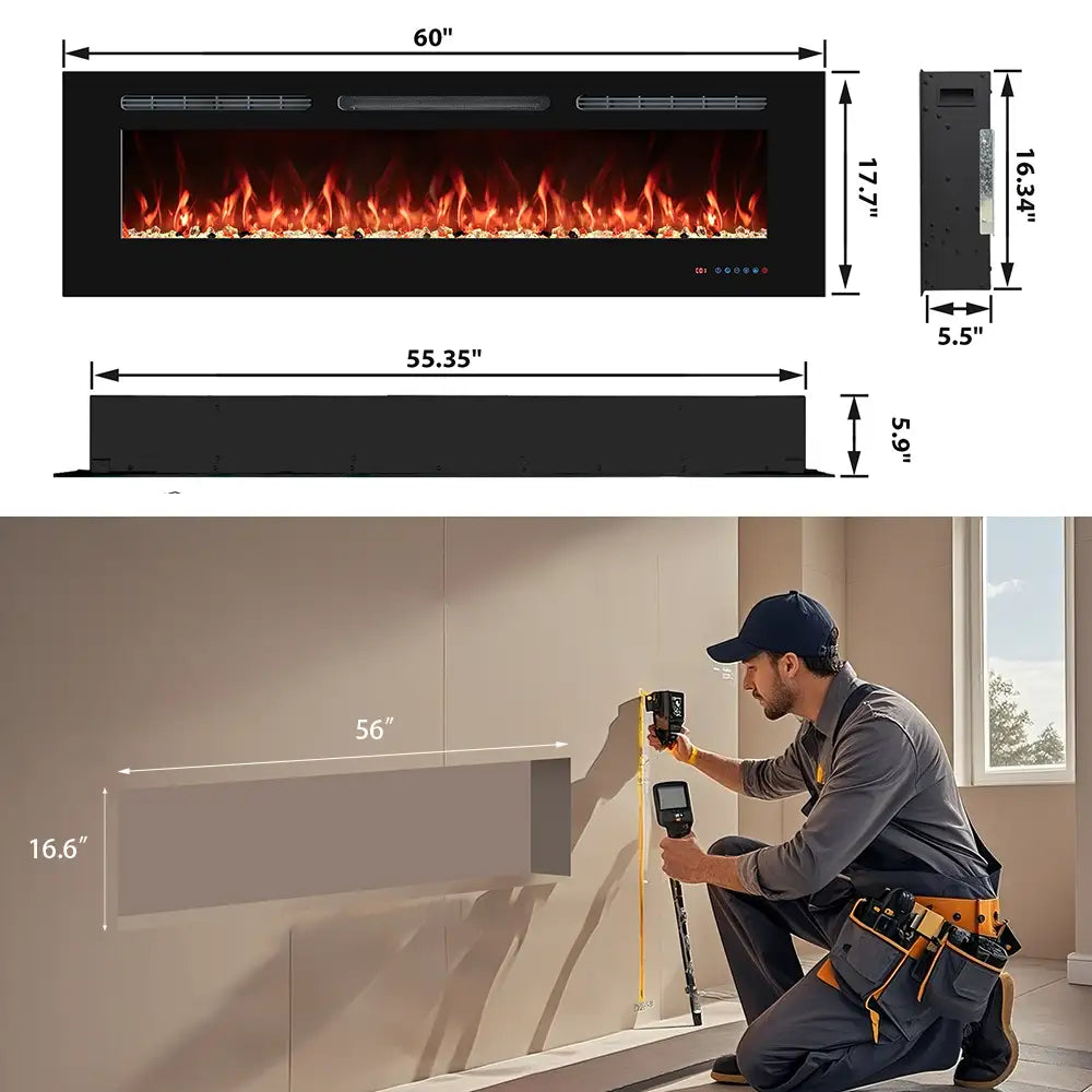 Elegant electric fireplace, the perfect combination of beauty and practicality. With 13 flame colors and 13 bed colors to choose from, you can create the ideal ambiance for any space. It offers both heating and flame-only options, allowing you to enjoy the mesmerizing flames even without the heat. Set the desired temperature with ease, and the fireplace will keep you warm and cozy.