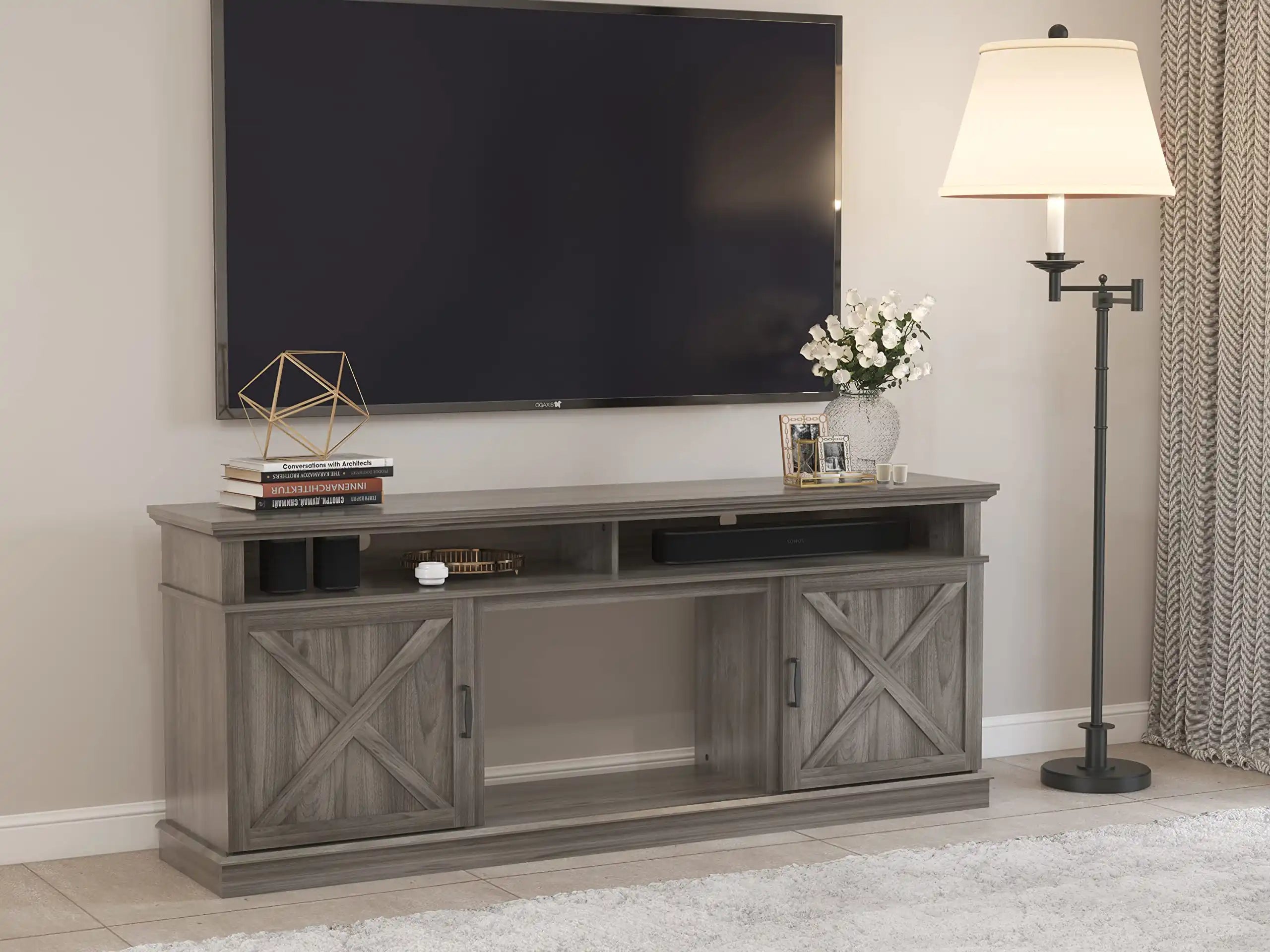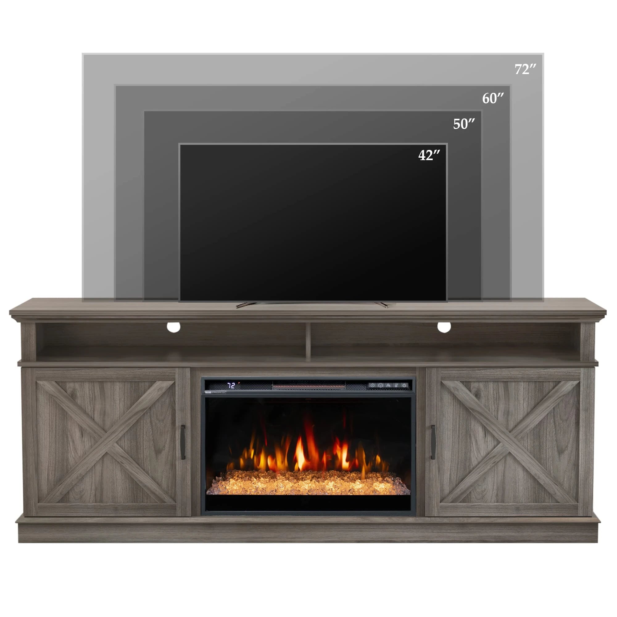FLTV TV Stand with 26 inch Electric Fireplace (Crystal) Gray