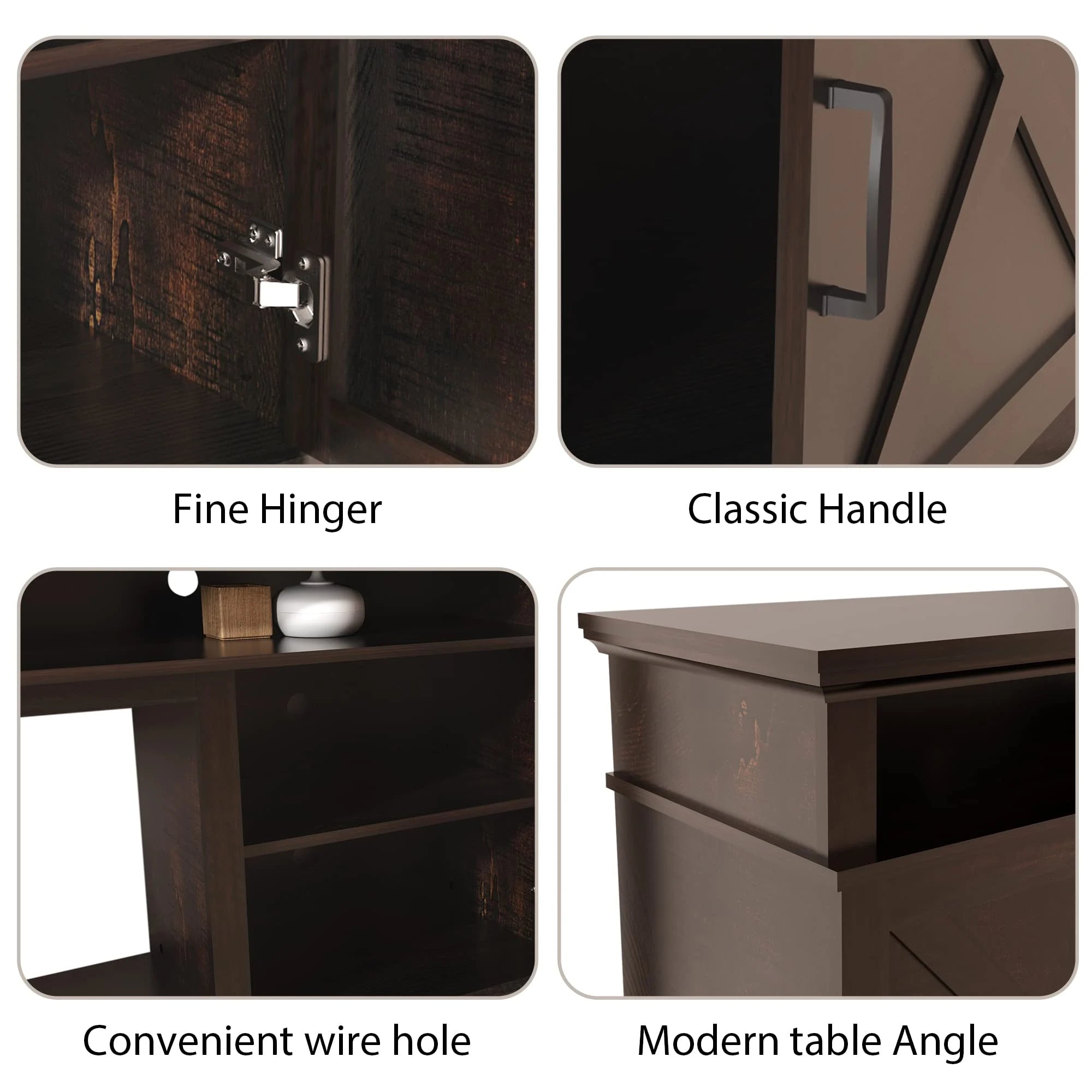 • Sturdy & Durable Material:This tv cabinet adopts high-quality MDF board, the finishes are waterproof and scratch-proof, and can hold up to 200 pounds. Fine and durable assembly parts make assembly easy. The frame of the fireplace heater is made of black sturdy metal, and the tempered glass panel proctects the logs well.