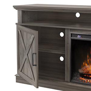 FLTV TV Stand with 26 inch Electric Fireplace (Logs) Gray