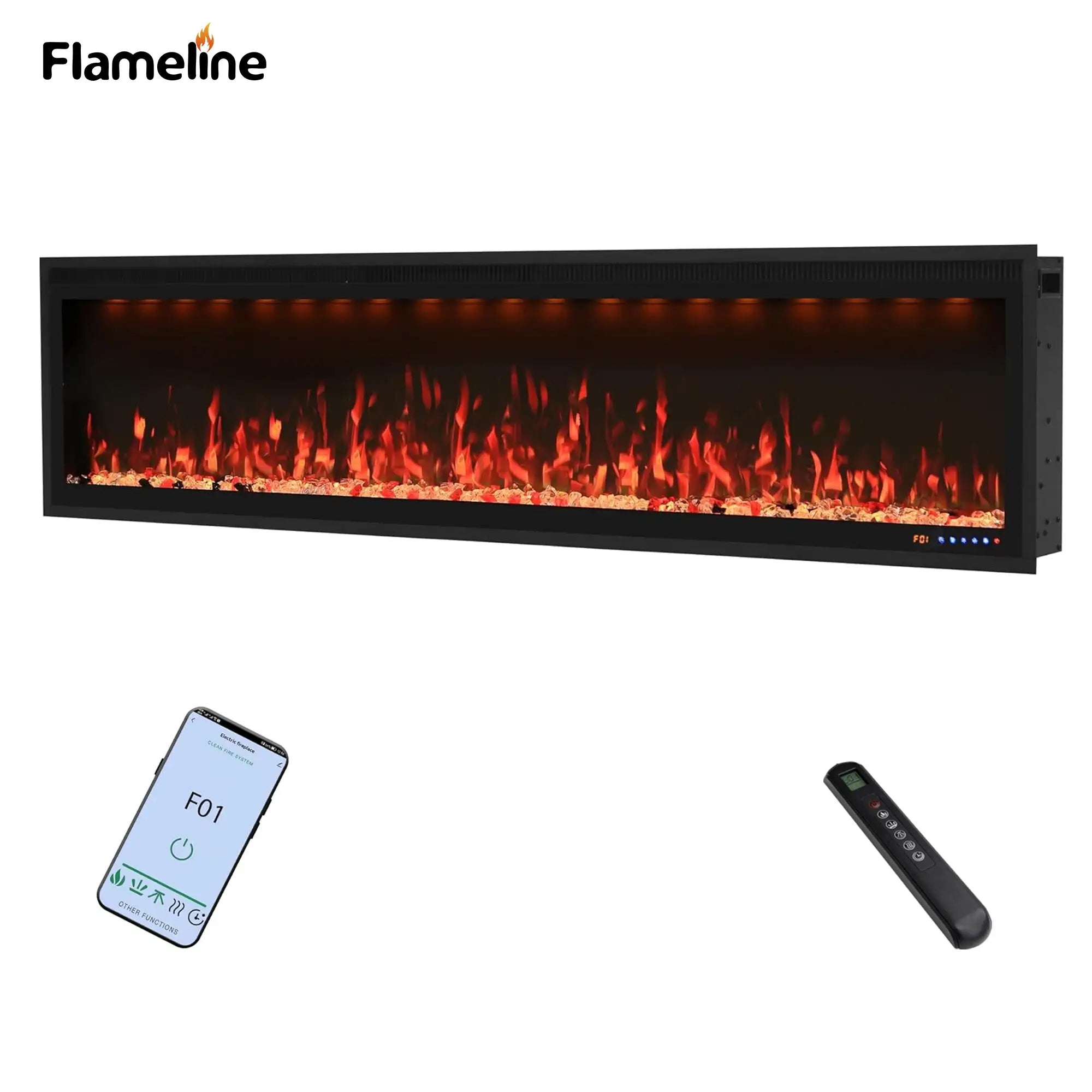 FLZ 74 Inch Recessed/Wall Mounted Smart Electric Fireplace